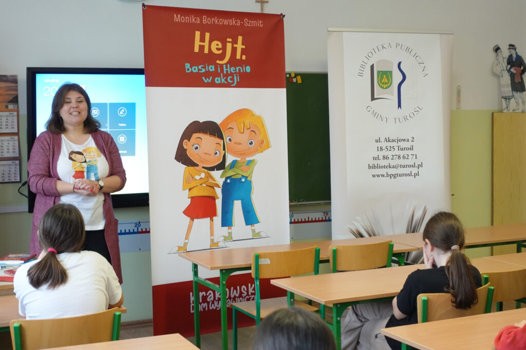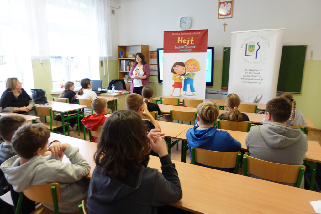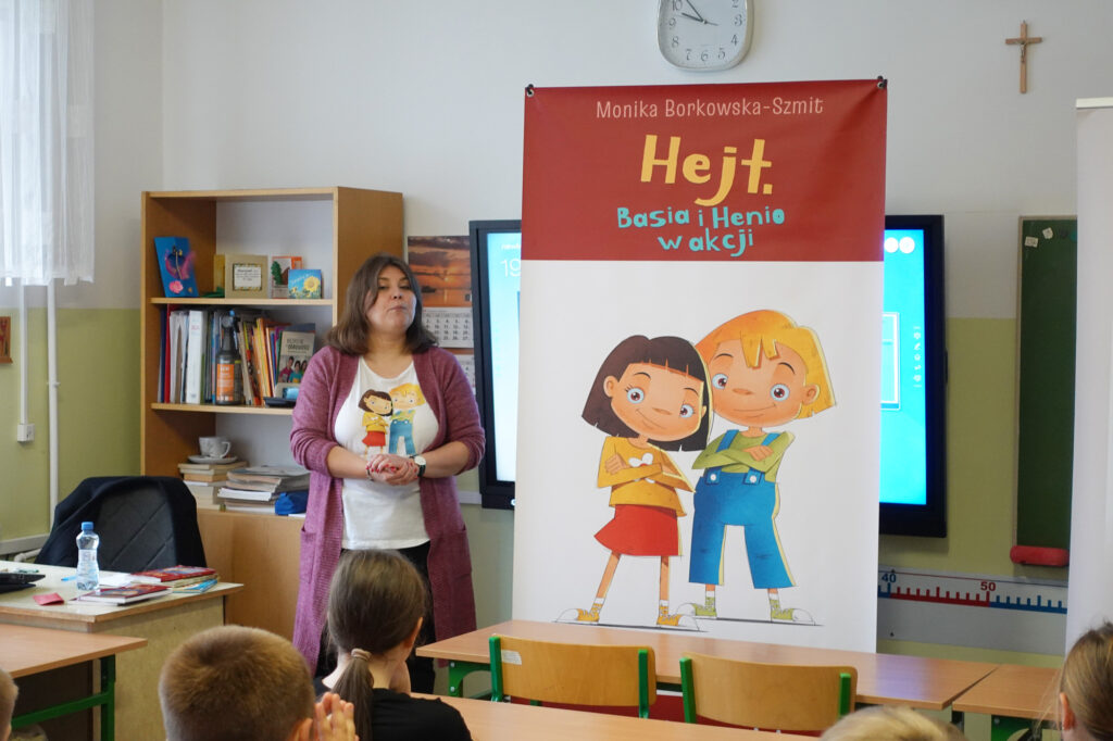 28 października 2025 roku Szkołę Podstawową w Lemanie odwiedziła pani Monika Borkowska-Szmit – absolwentka filologii polskiej i ekonomii, dziennikarka oraz autorka książek dla młodych czytelników. W spotkaniu wzięli udział uczniowie klasy IV, V i VI. Pani Monika przedstawiła swoje publikacje, podkreśliła, jak istotne jest zrozumienie zjawiska hejtu i nauczenie się odpowiednich reakcji na tego typu zachowania w sieci. Zwróciła także uwagę na inne niebezpieczeństwa czyhające na młodych ludzi w przestrzeni internetowej.