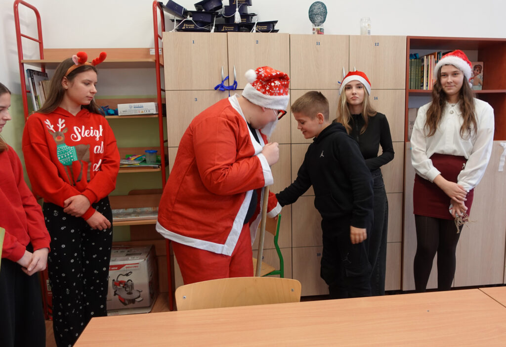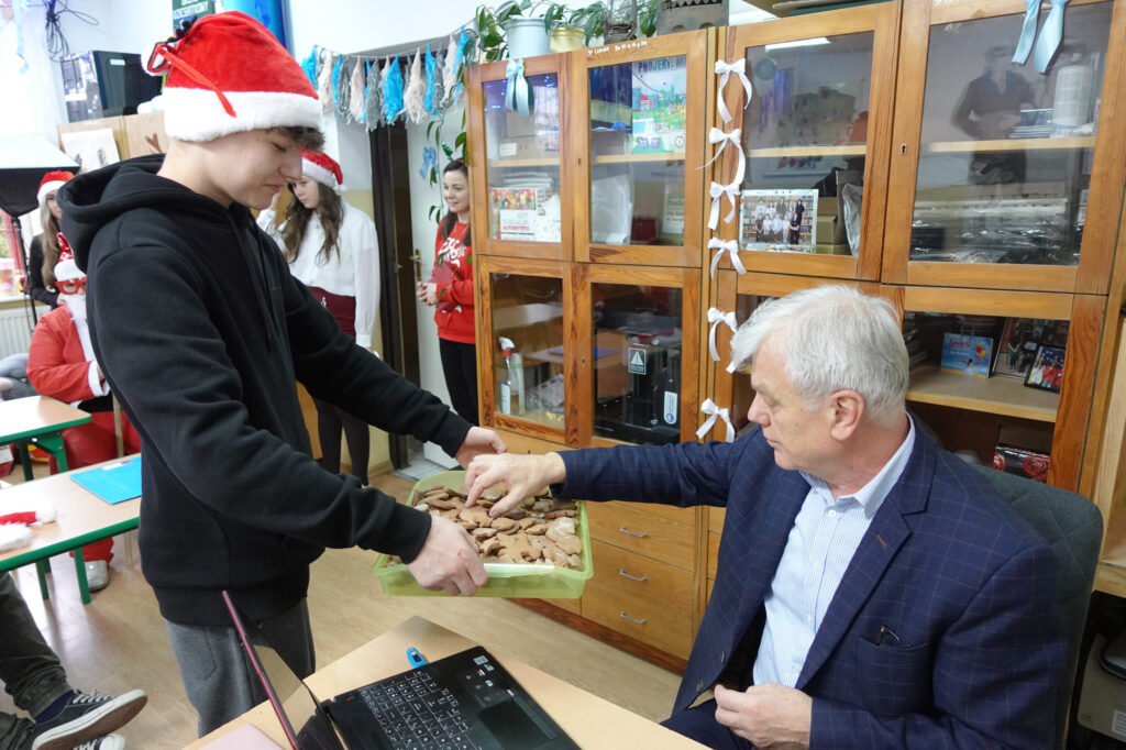 Tegoroczne Mikołajki w szkole odbyły się w wyjątkowo radosnej i świątecznej atmosferze, którą podtrzymywała puszczana na przerwach muzyka świąteczna. Uczniowie z dużym zaangażowaniem przyszli do szkoły w świątecznych strojach, z niecierpliwością oczekując na wizytę Świętego Mikołaja. Kulminacją dnia było rozdanie słodkich upominków: pysznych pierniczków, które na zlecenie Mikołaja upiekła i przygotowała dla całej społeczności szkolnej klasa VIII.