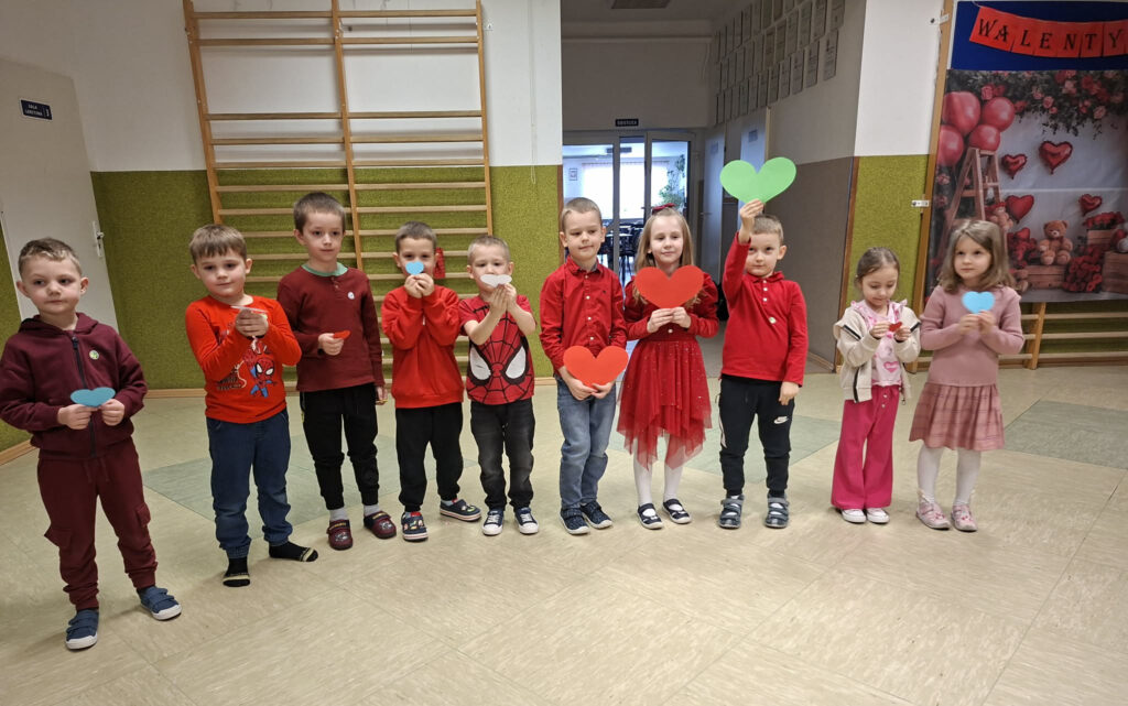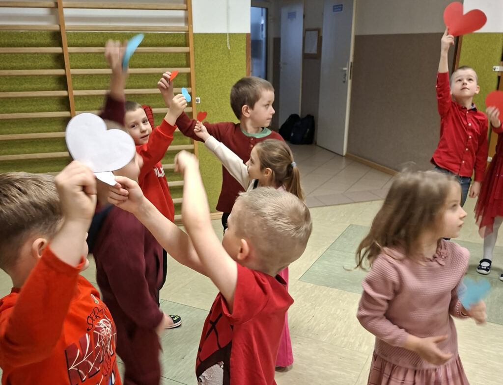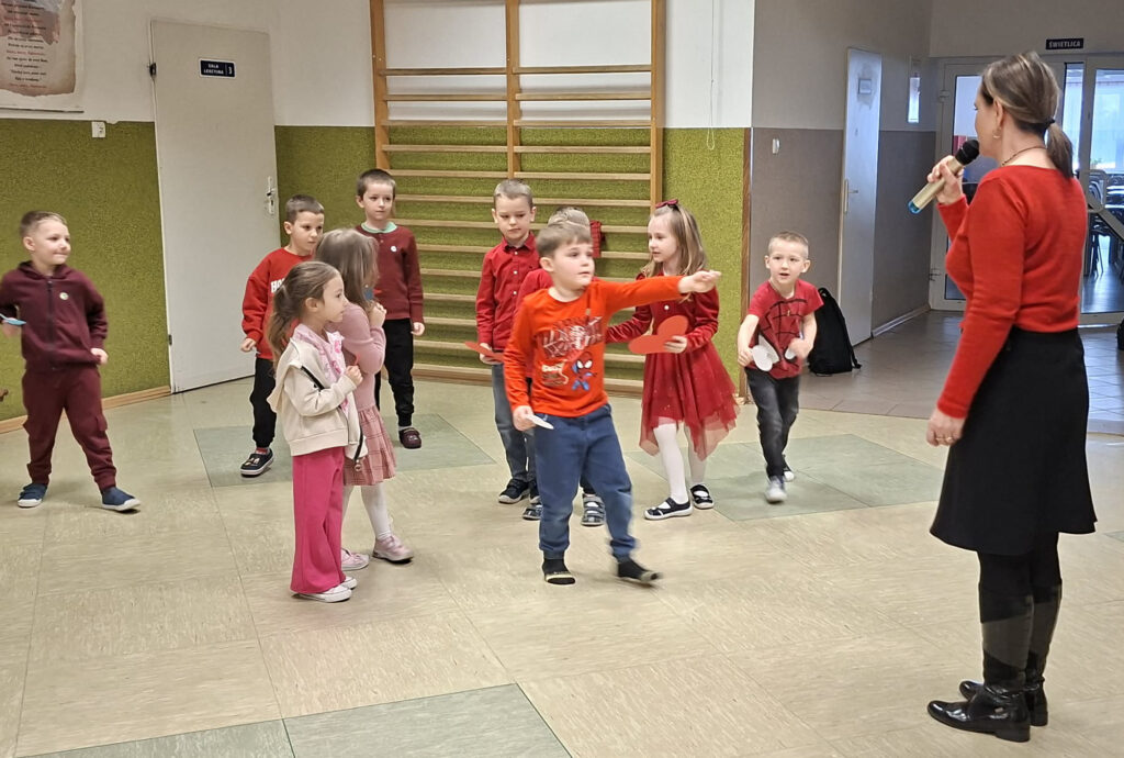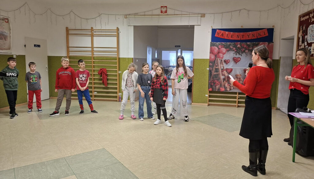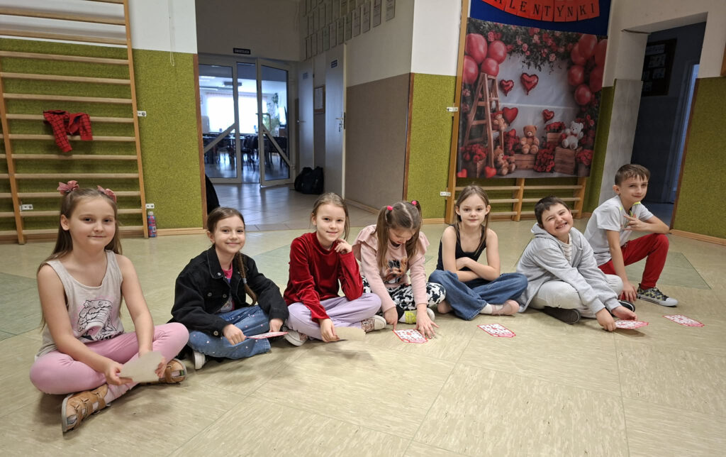 W dniu 13 lutego 2026 r. w naszej szkole odbyły się obchody Walentynek z udziałem wszystkich klas. Oddział przedszkolny uczestniczył w zabawie „Serduszko do serduszka”, łącząc się w pary i grupy, klasa I układała walentynkowe puzzle matematyczne w parach, a klasa II grała w walentynkowe bingo. Klasa III brała udział w zabawie „Muzyczne gesty”, wykonując wobec siebie empatyczne i miłe gesty. Klasy IV-V uczestniczyły w zabawie „Papierowy deszcz”, podczas której uczniowie mówili sobie nawzajem miłe słowa. Klasy VI-VIII tworzyły „Eliksir miłości”, czyli propozycje okazywania miłości, sympatii i empatii, podejmując refleksję nad relacjami, czego efektem było powstanie drzewka życzliwości. Zabawy miały krótką formę, jednak skutecznie wzmacniały relacje rówieśnicze oraz pozytywny klimat szkoły.