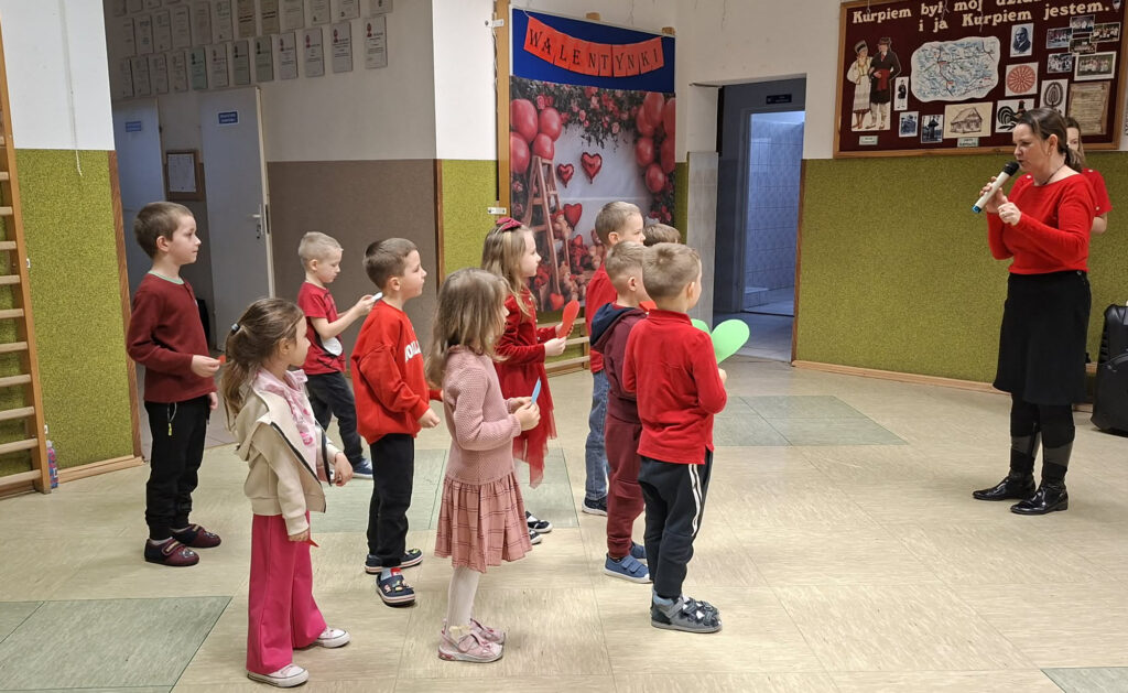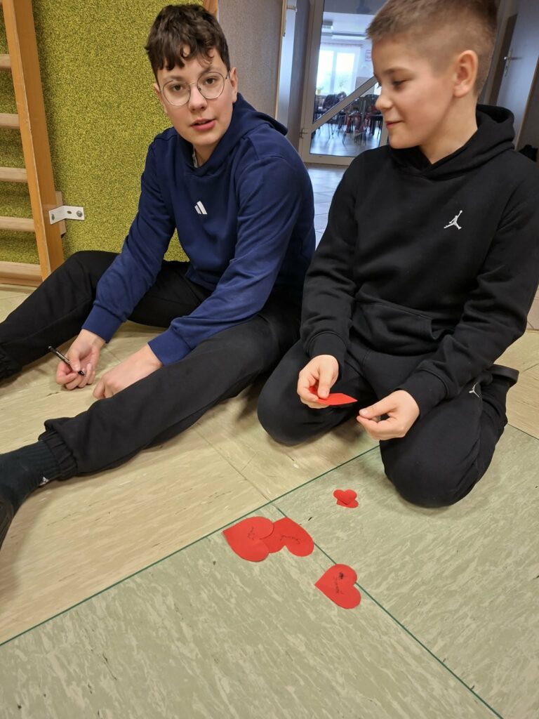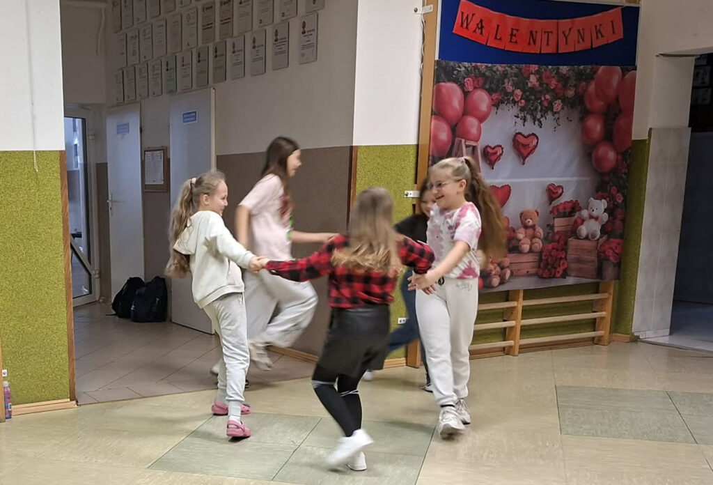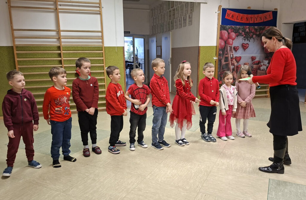W dniu 13 lutego 2026 r. w naszej szkole odbyły się obchody Walentynek z udziałem wszystkich klas. Oddział przedszkolny uczestniczył w zabawie „Serduszko do serduszka”, łącząc się w pary i grupy, klasa I układała walentynkowe puzzle matematyczne w parach, a klasa II grała w walentynkowe bingo. Klasa III brała udział w zabawie „Muzyczne gesty”, wykonując wobec siebie empatyczne i miłe gesty. Klasy IV-V uczestniczyły w zabawie „Papierowy deszcz”, podczas której uczniowie mówili sobie nawzajem miłe słowa. Klasy VI-VIII tworzyły „Eliksir miłości”, czyli propozycje okazywania miłości, sympatii i empatii, podejmując refleksję nad relacjami, czego efektem było powstanie drzewka życzliwości. Zabawy miały krótką formę, jednak skutecznie wzmacniały relacje rówieśnicze oraz pozytywny klimat szkoły.