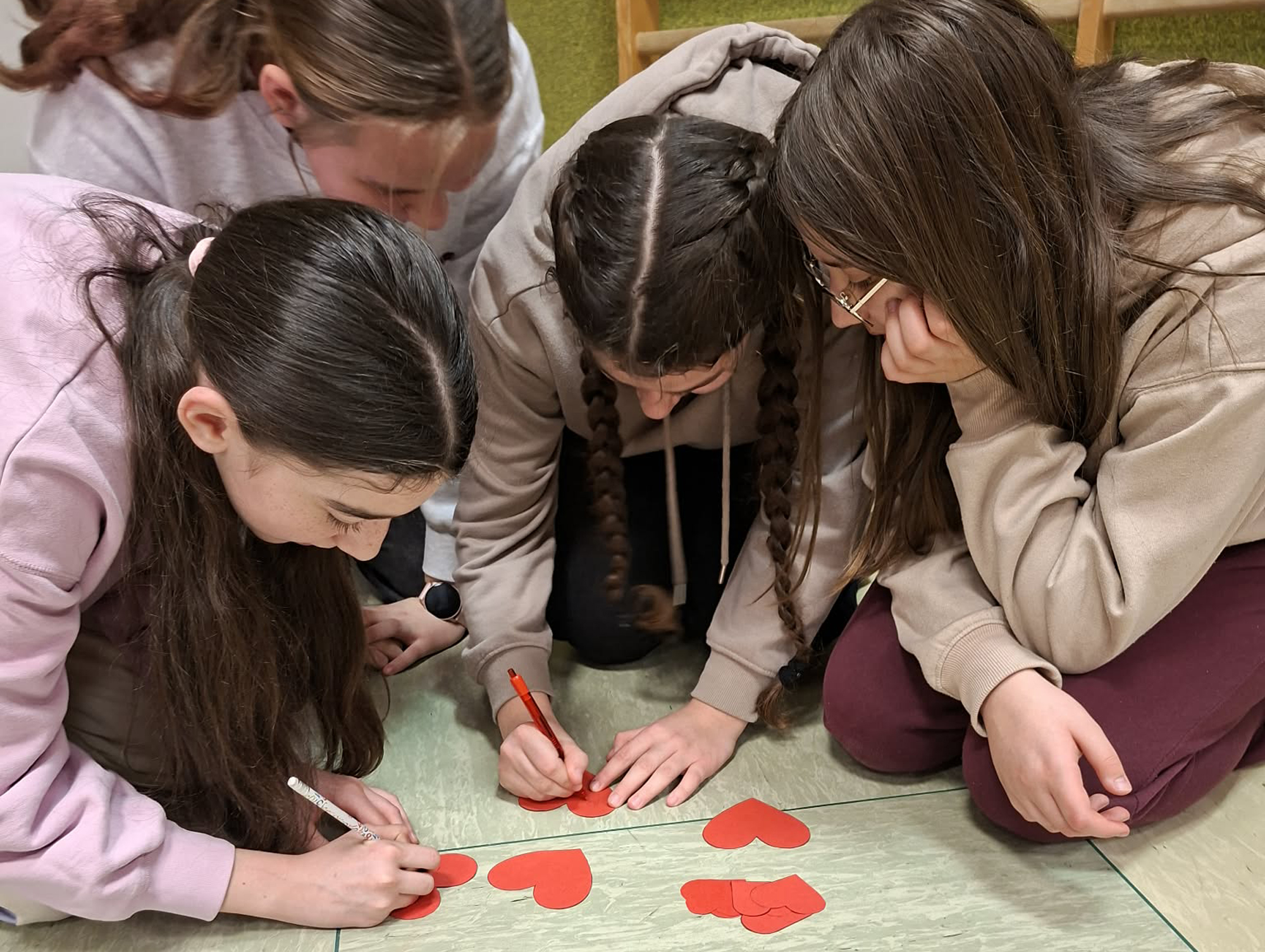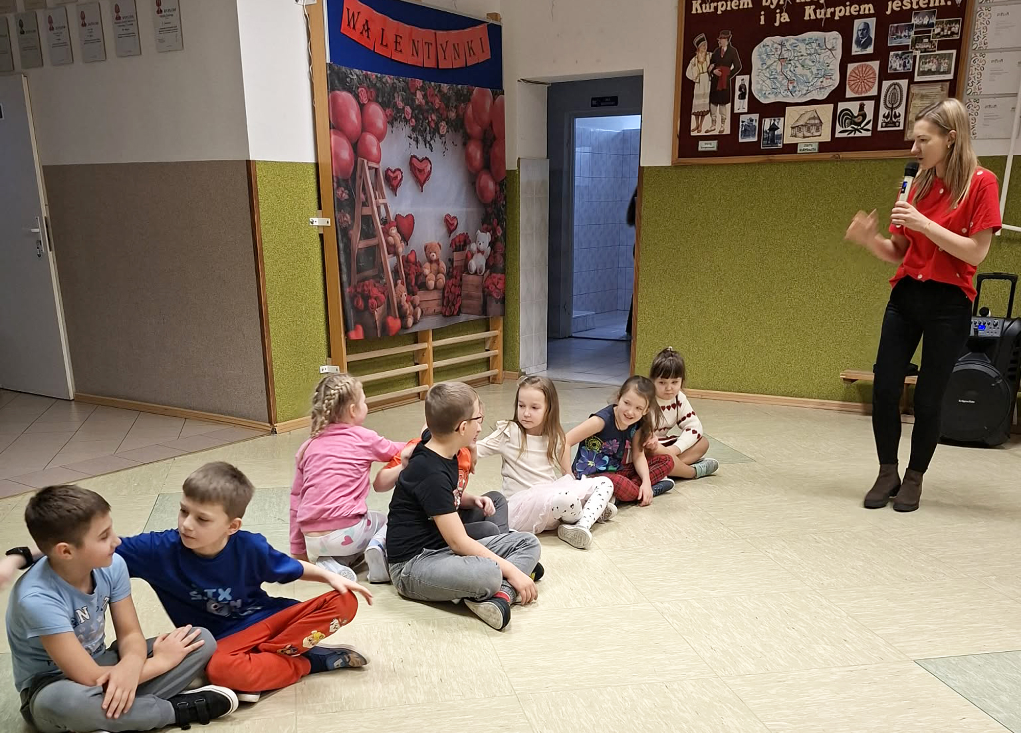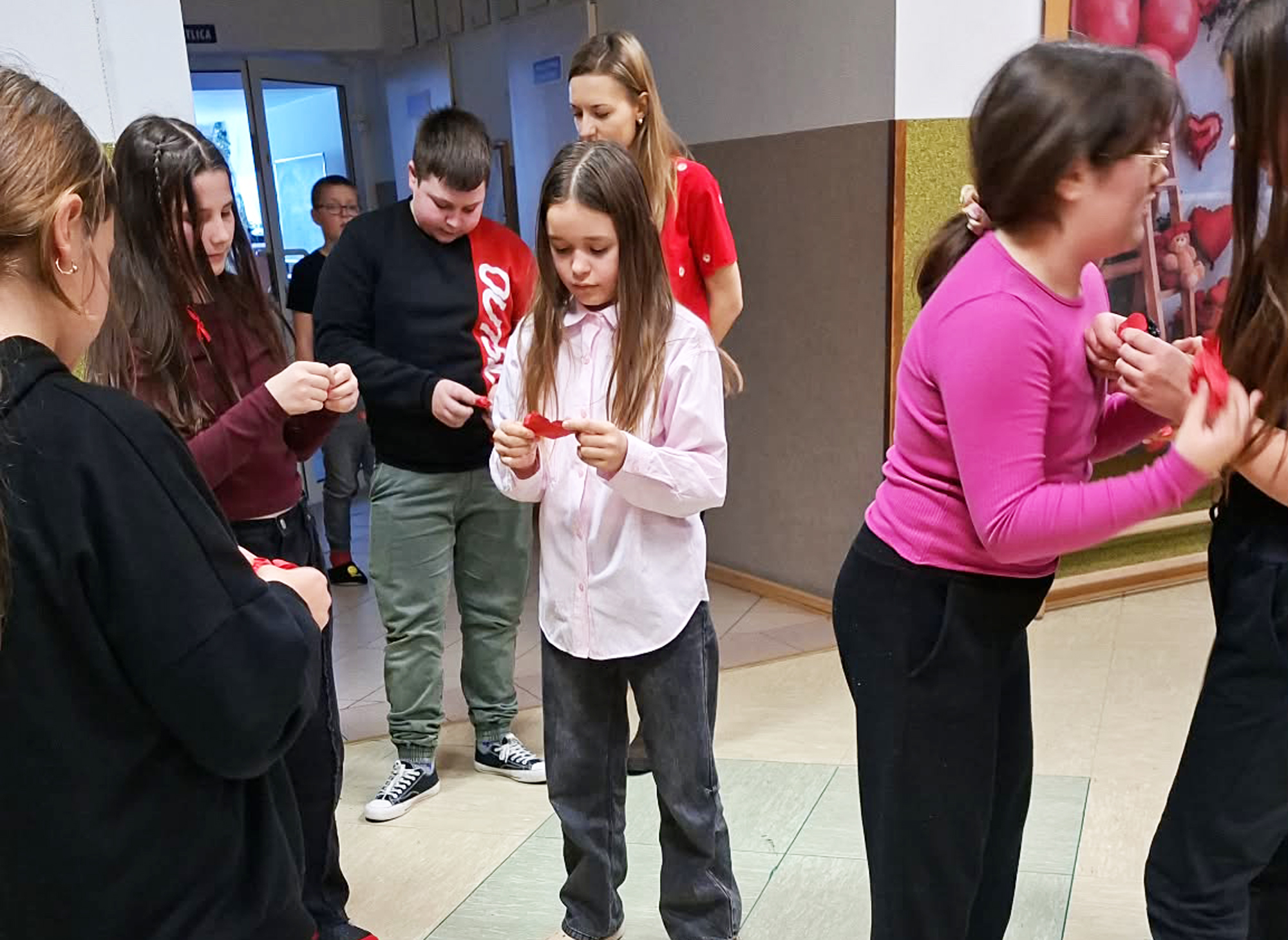 W dniu 13 lutego 2026 r. w naszej szkole odbyły się obchody Walentynek z udziałem wszystkich klas. Oddział przedszkolny uczestniczył w zabawie „Serduszko do serduszka”, łącząc się w pary i grupy, klasa I układała walentynkowe puzzle matematyczne w parach, a klasa II grała w walentynkowe bingo. Klasa III brała udział w zabawie „Muzyczne gesty”, wykonując wobec siebie empatyczne i miłe gesty. Klasy IV-V uczestniczyły w zabawie „Papierowy deszcz”, podczas której uczniowie mówili sobie nawzajem miłe słowa. Klasy VI-VIII tworzyły „Eliksir miłości”, czyli propozycje okazywania miłości, sympatii i empatii, podejmując refleksję nad relacjami, czego efektem było powstanie drzewka życzliwości. Zabawy miały krótką formę, jednak skutecznie wzmacniały relacje rówieśnicze oraz pozytywny klimat szkoły.