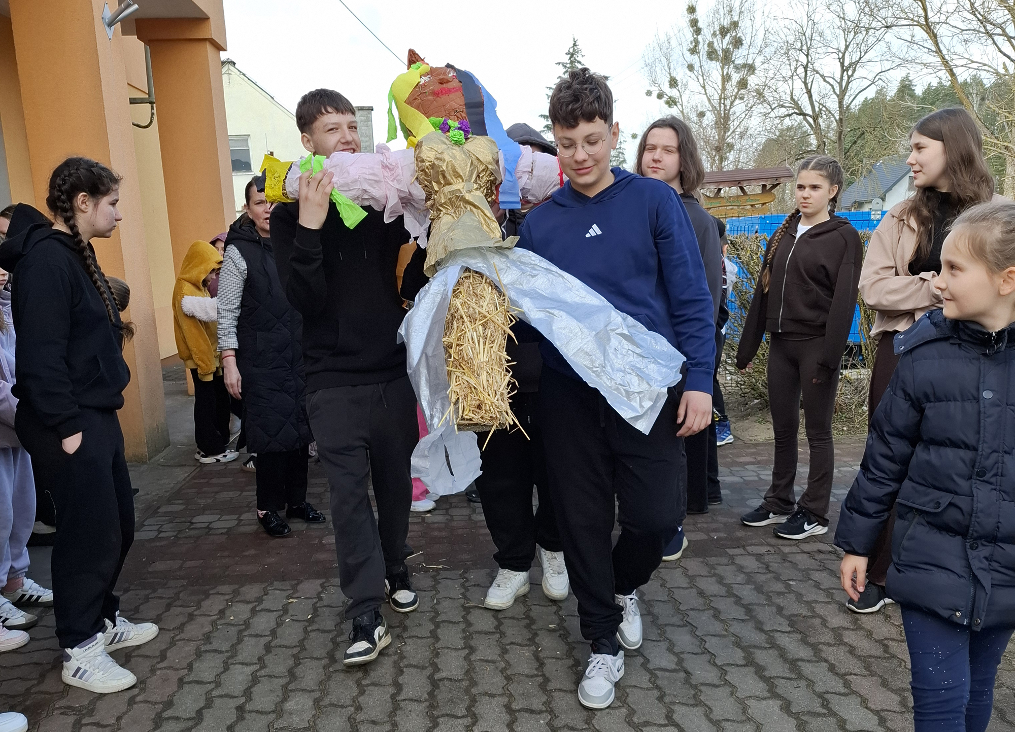 Starsze klasy od VI do VIII wspólnymi siłami przygotowały tradycyjną Marzannę, którą uroczyście pożegnaliśmy podczas wspólnego wyjścia na zewnątrz o godzinie 12:00.